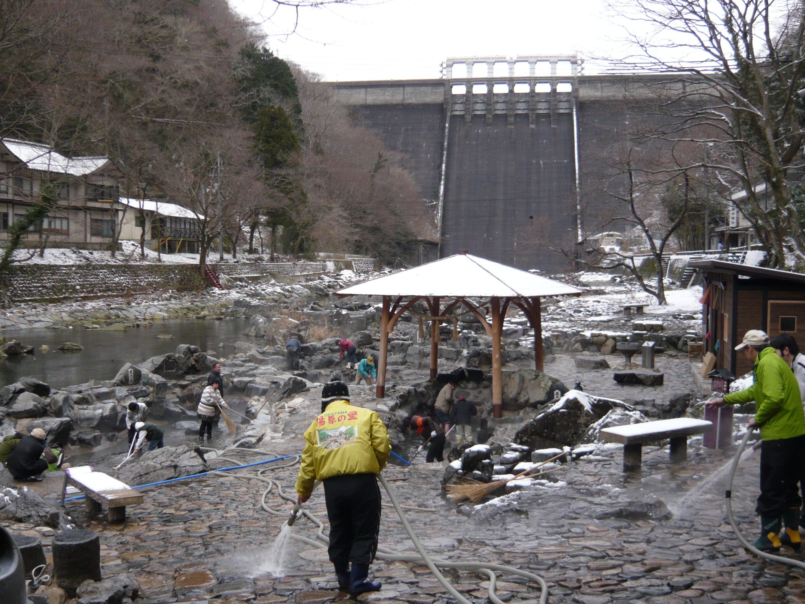 湯原温泉旅館組合の方と一緒に大掃除に参加してみませんか?