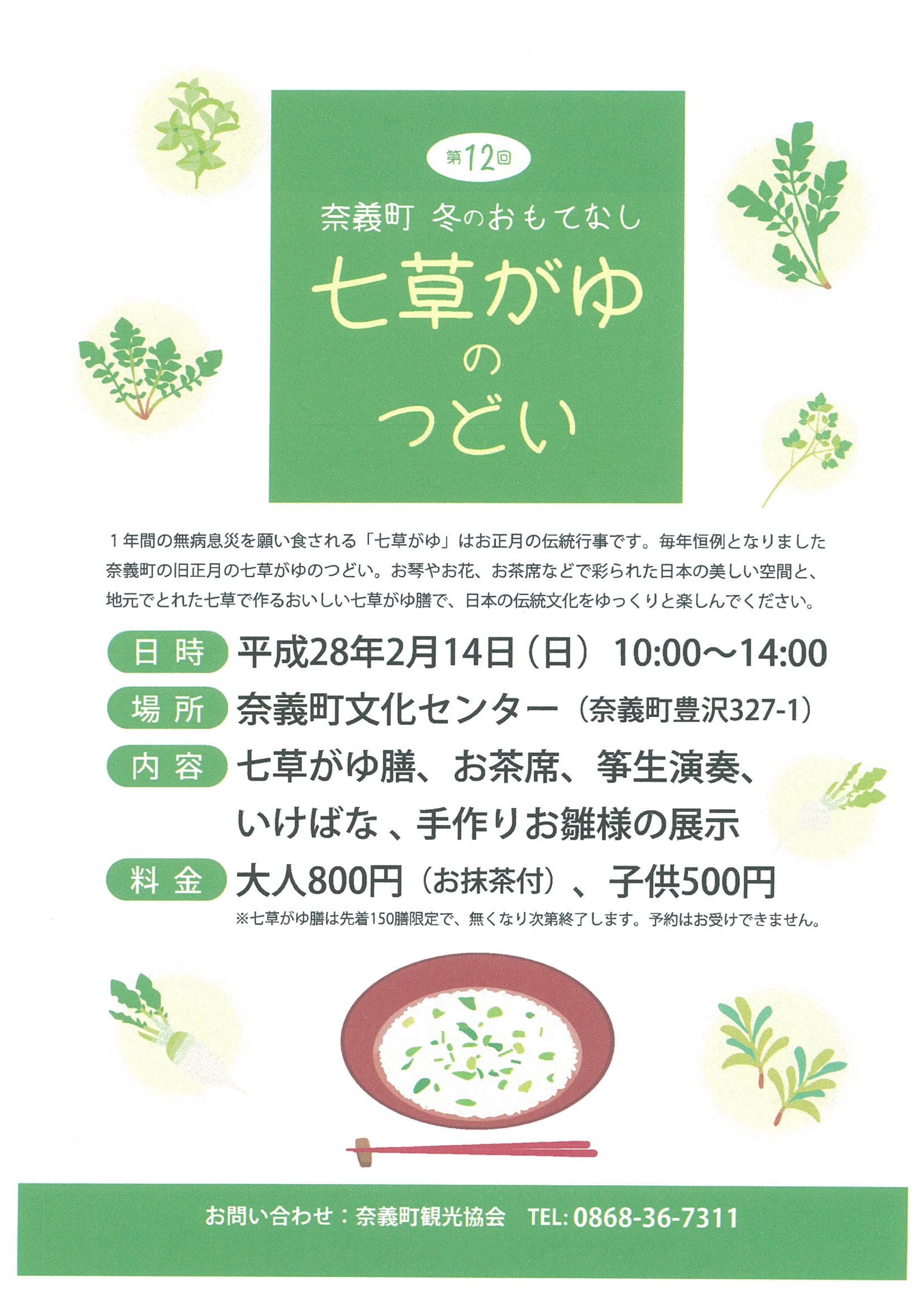 第12回奈義町冬のおもてなし 七草がゆのつどい