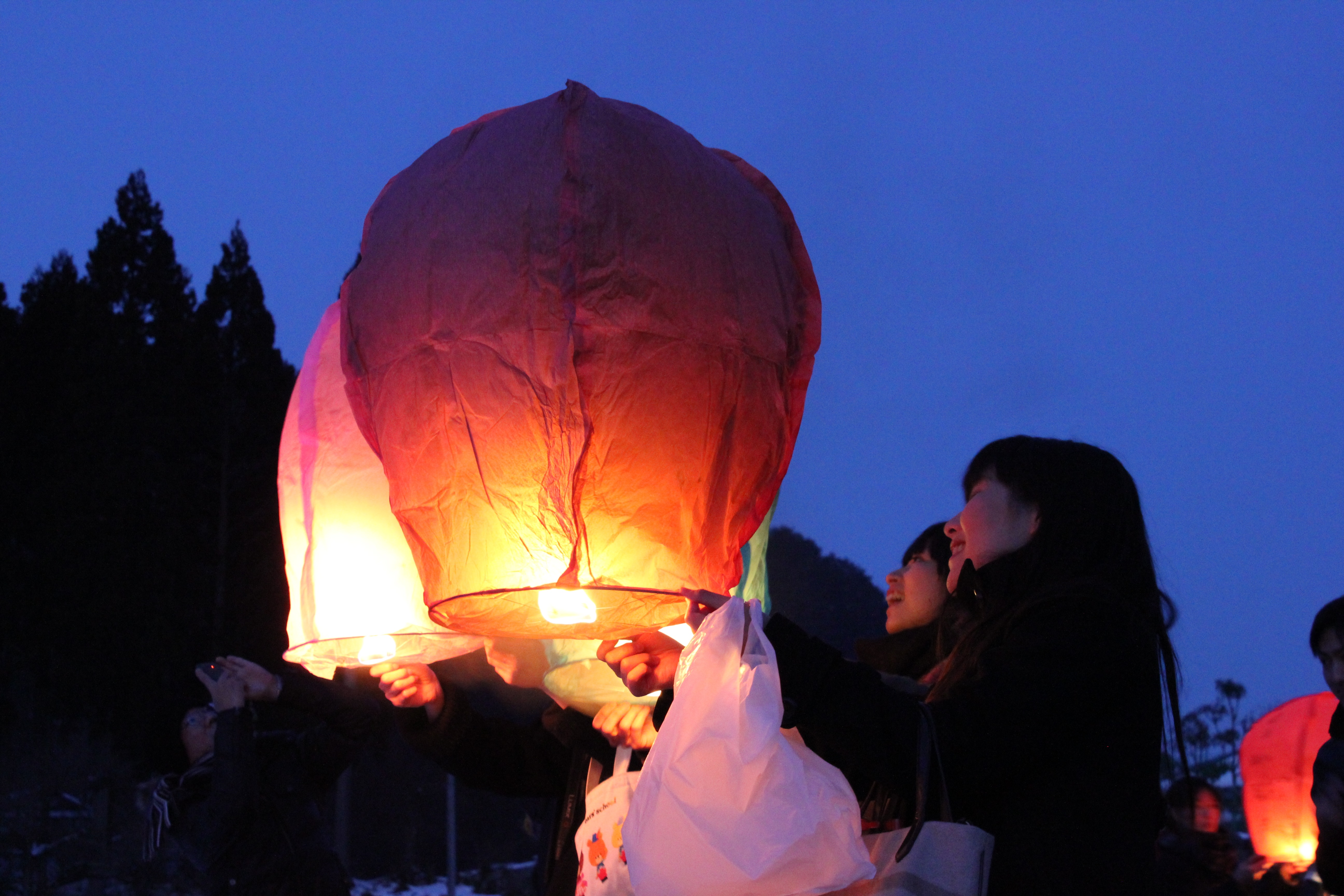 スカイランタン(紙熱気球)を冬空に飛ばします。