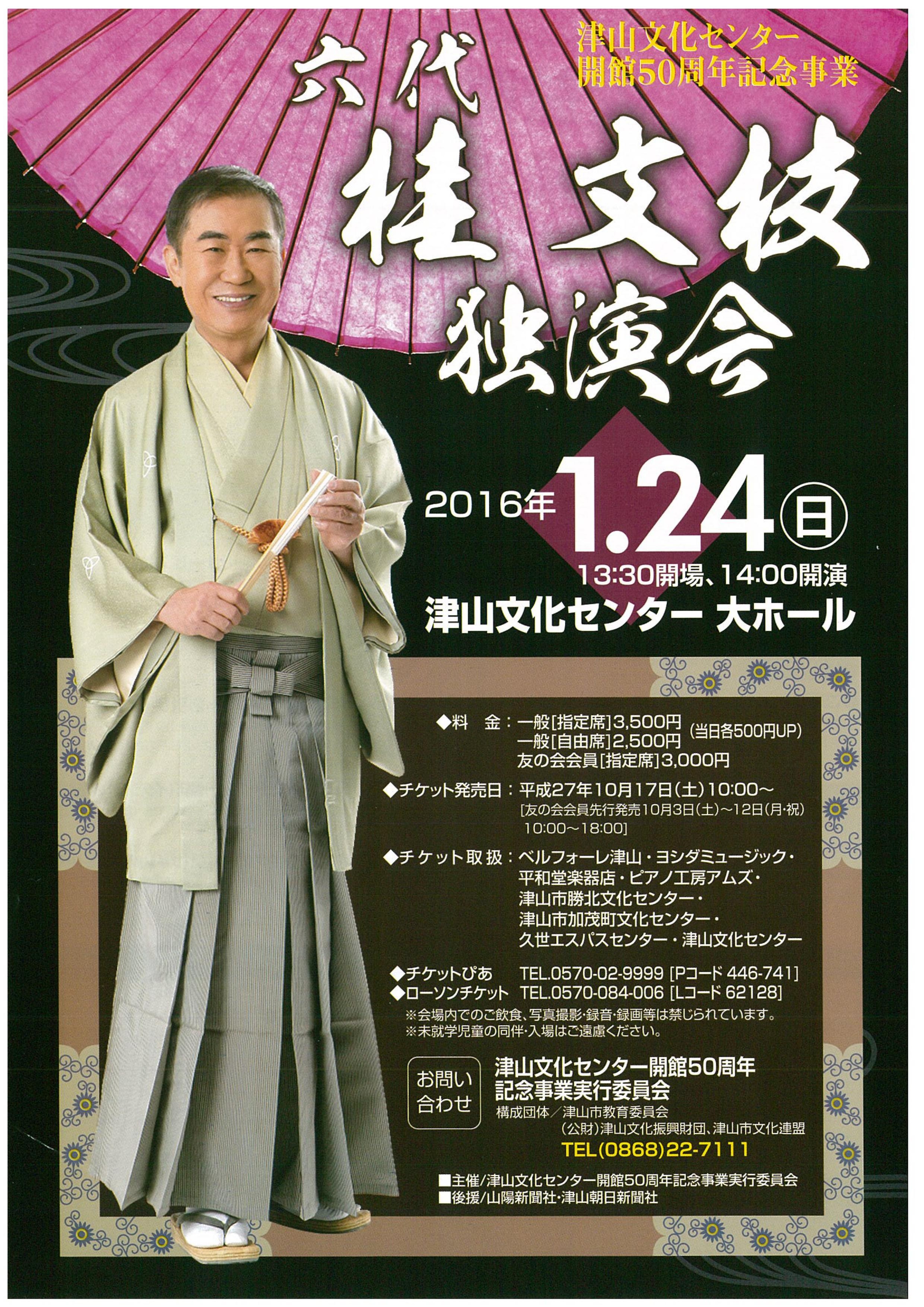 津山文化センター開館50年周年の記念事業として テレビでもおなじみの6代目桂文枝の独演会です!